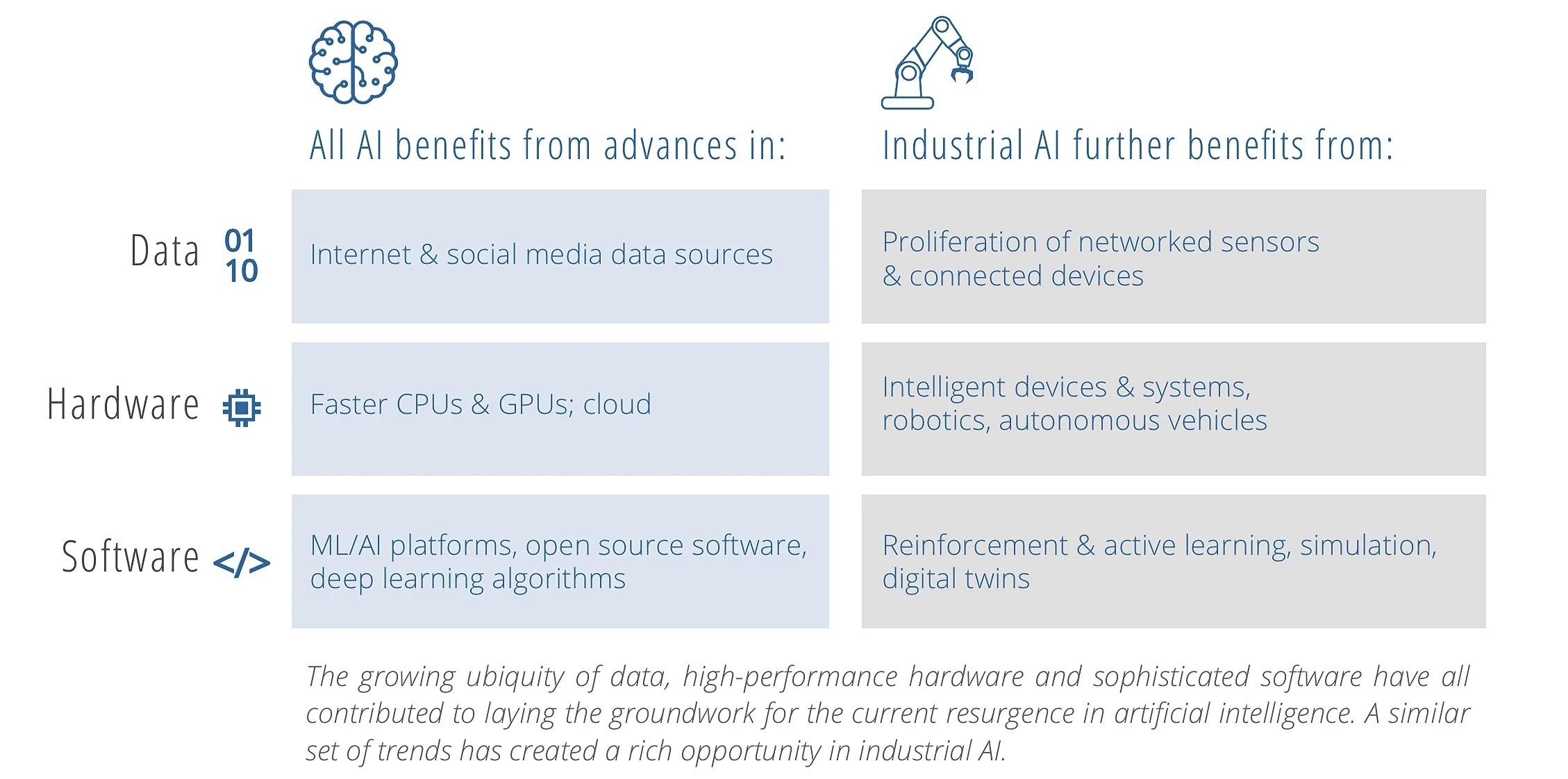 To what then does the term “industrial AI” refer? Well, certainly the word industrial has certain immediate connotations, primarily of manufacturing and heavy industry. But to limit our scope to just those industries would be to miss the less obvious connections between a broad set of related use cases, the environments they exist within, and the common challenges and requirements that they give rise to.